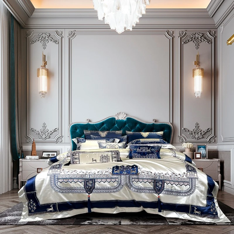 Luxury Embroidered Blue Silver Satin Decor Bedding Queen King Size 4 6 8 11pcs Tassel Duvet Cover Sheet Bed Sheet Pillowcases Aliexpress