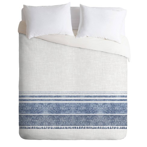 Queen Full Holli Zollinger French Chambray Tassel Geometric Duvet Set Blue Deny Designs Target